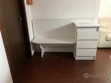 1 panca bianca con tre cassetti bianchi e alzatina: Lunghezza cm. 164, Larghezza cm. 51, Altezza cm. 98