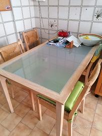 Vendo cucina buono stato completa di elettrodomestici, la cucina è modulare e può essere composta a piacimento, ora è divisa in 2 blocchi uno di cm. 186x60 con lavandino e lavastoviglie Bosch, l'altro cm. 212 con fuochi e forno elettrico. Pensili con ante in legno e vetro Top chiaro. Frigorifero ignis e tavolo con 4 sedie. Misure tavolo 140x80 legno e piano in vetro. Smontaggio e trasporto a carico dell'acquirente.