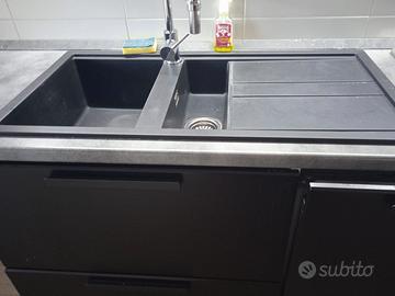 Cucina completa forno smeg piano cottura smeg da 100, doppio lavabo in tretrik nero, cappa in acciaio lavastoviglie bosch tutto seminuovo