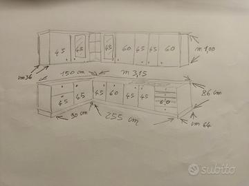 Vendo cucina componibile angolare con top in marmo, lavastoviglie REX 12 coperti, forno ventilato BOSCH, piano aspiratore in acciaio e tavolo in massello estendibile con 6 sedie. Regalo forno a microonde Samsung