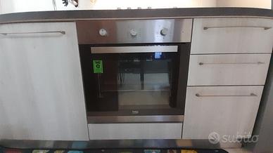 Vendo cucina componibile acquistata 5 anni fa, ben tenuta e perfettamente funzionante 🎨 **Finiture e materiali:** * Frontali colore **rovere artico** * Struttura bianca * Piano top in laminato effetto **Blak Cardoso** (spessore 4 cm) 📏 **Dimensioni:** * Pensili superiori: 270 cm * Base inferiore: 210 cm **Elettrodomestici inclusi (marca Beko):** ✔️ **Lavastoviglie 60 cm** * 12 coperti * LED fasi di lavaggio * Sistema SelfFit ✔️ **Piano cottura 60 cm * 4 fuochi * Finitura inox * Valvola di sicurezza * Accensione elettronica integrata * Griglie smaltate ✔️ Forno multifunzione inox 60 cm * 6 funzioni di cottura * Ventilazione tangenziale di raffreddamento ✔️ Frigorifero incluso * Dimensioni: 60 × 55 × 180 cm ✅ Cucina completa e pronta all’uso 📍 Smontaggio e trasporto a carico dell’acquirente 💰 Prezzo: € 1000 Per maggiori informazioni o per visionarla, contattami in privato!
