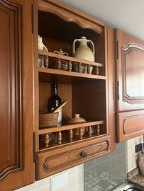 Si vende cucina vintage in legno con piano in marmo e lavello a doppia vasca in inox, completa di tutti i pensili e mobili con tavolo da cucina correato di 4/6 sedie. Ideale per seconde case o baite di montagna. Nel prezzo sino compresi i seguenti elettrodomestici perfettamente funzionanti: - frigorifero REX da incasso con freezer - lavastoviglie Bosh Adapta - cucina con piano cottura Hotpoint Ariston con forno e 4 fuochi. Tavolo in legno 140x80 allungabile fino a 220x80 ottimo per 8 persone.