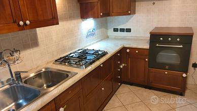 Causa cambio arredi, vendo in buono stato cucina in vero legno con tre cestoni, 6 cassetti, 11 ante (di cui 1 in vetro satinato), 9 ripiani interni e completa di frigo e freezer Bosch, lavastoviglie Beko, lavello con due vasche e miscelatore Jollynox, scolapiatti, piano cottura con 5 fuochi Ariston, cappa aspirante Falmec, forno Rex, portaposate, lampadario in ceramica, 2 luci led.
