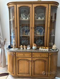 Cucina in buono stato, con top e ripiani in marmo, macchina del gas con 5 fuochi e fornello elettrico, completa di mobili, credenza e tavolo in marmo con 6 sedie.