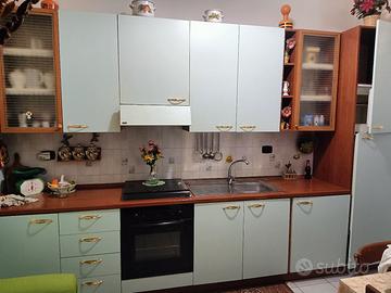 Vendo cucina come da titolo, ben tenuta e completa di elettrodomestici tra cui: forno sotto piano cottura, lavatrice, frigorifero e congelatore;tutto funzionante. Si esclude dalla vendita il contenuto (piatti,pentolame.. ecc che si vedono in foto). la lunghezza totale è circa 3.70 MT. Smontaggio e trasporto a carico dell'acquirente. Prezzo affare.