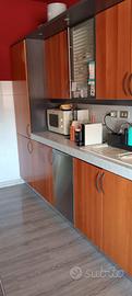 Cucina Salvarani con elettrodomestici funzionanti, vetrina, dispensa, tavolo + 4 sgabelli. Lunghezza m.3,97.