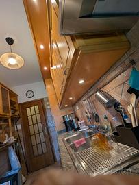 Vendo cucina (di fattura artigianale) con doppio lato (lavoro + elettrodomestici) sulla sinistra e piano vetrina sulla sinistra. Legno e marmi di ottima fattura. Condizioni eccellenti. Elettrodomestici (forno e lavastoviglie) due anni di vita. Misure: - lato più lungo con elettrodomestici: 3 m e 95 cm - profondità piano da lavoro in marmo: 95 cm - profondità pensili (lato elettrodomestici): 37 cm - profondità pensili + anta aperta (lato elettrodomestici): 98 cm - profondità pensili (lato tavolo): 20 cm - profondità pensili + anta aperta (lato tavolo): 65,5 cm A carico dell'acquirente smontaggio e trasporto.
