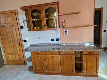Cucina componibile in rovere completa. Misure parte angolare cm.229x289 e base lineare cm.223, tavolo cm.90x200 h.80. Forno e lavastoviglie Bosch nuovi. Cappa Faber nuova. Frigorifero Elettrolux come nuovo.