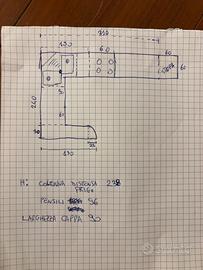 Cucina completa in massello di ciliegio Top in marmo Cappa aspirante, forno elettrico, 4 fuochi Completa di stufa economica (vendibile a parte) Misure in foto allegata Disponibile per sopralluogo e valutazione misure Prezzo trattabile