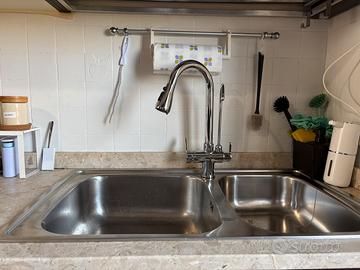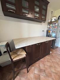 Per cambio arredamento vendo cucina completa in ottime condizioni, in legno scuro con piano in TRAVERTINO. Composta da cucina principale da 3,75 m e isola centrale da 185 x 90 cm, con ampia capacità contenitiva grazie a basi e pensili. Inclusi nella vendita: •mobili base e pensili •isola centrale •lavello doppia vasca •piano cottura 5 fuochi •lavastoviglie Bosch funzionante •4 sgabelli alti coordinati La cucina è tenuta bene, molto pratica e ancora pronta all’uso. Misure principali: •cucina: 3,75 m •isola: 185 x 90 cm •altezza piano lavoro: 88 cm •pensili lato opposto: 185 cm Forno e microonde non inclusi, eventualmente disponibili a parte. Ritiro e smontaggio a carico dell’acquirente, nella finestra compresa tra il 4 e il 7 giugno 2026. Prezzo trattabile