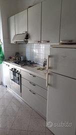 Cucina completa su 2 fronti di 2,55 metri ciascuno, con elettrodomestici (piano cottura BOSH, forno Candy, frigo whirpool, lavello in fragranite franke)