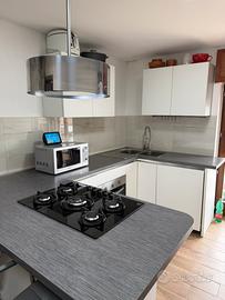 Cucina completa con penisola e cappa sospesa – Eleganza e funzionalità! Vendo cucina moderna completa, perfetta per chi cerca stile e praticità. Composizione con penisola e cappa sospesa, include: •Cucina 5 fuochi con piano in vetro (Electrolux) •Forno Whirlpool •Forno a microonde (Samsung) •Frigo + freezer 70 cm (Hotpoint Ariston) •3 cassettoni •2 angolari •1 cassetto posate •2 pensili (35x90 cm) •2 sgabelli •Cappa sospesa con illuminazione Dimensioni totali: lato lavello 1,62 m, lunghezza 2,80 m, lato penisola 1,81 m. Interno cucina 1,35. Contattami per info e visite! CUCINA ANCORA MONTATA, TRASPORTO A CARICO DELL’ACQUIRENTE