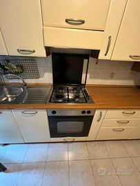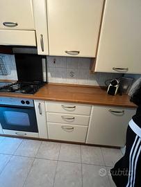Vendo bellissima cucina lineare completa, dal design classico e accogliente, ideale per appartamenti o case vacanze. La cucina è stata tenuta con molta cura ed è perfettamente funzionante. Caratteristiche principali: Colore: Ante color crema/avorio con finitura opaca e maniglie satinate. Top: Piano di lavoro in laminato effetto legno caldo. Elettrodomestici inclusi: Piano cottura a gas (4 fuochi) con coperchio in vetro nero. Forno elettrico multifunzione. Lavastoviglie integrata (marca Ariston/simile - controlla la marca). Frigorifero con congelatore a colonna (marca Finlux). Cappa aspirante integrata nel pensile. Lavello a una vasca con sgocciolatoio e miscelatore incluso. Organizzazione spazi: La cucina offre molto spazio per lo stivaggio: Pensili superiori: Includono uno scolapiatti integrato e vari scomparti a ripiani. Un pensile presenta l'anta in vetro satinato. Basi inferiori: Cassettiera a 3 cassetti e vari vani a sportello. Colonne extra: Inclusa colonna per dispensa o scopa/prodotti pulizia. Condizioni: La cucina è in buone condizioni. Prezzo: 700€ TRATTABILE Note per il ritiro: Smontaggio e trasporto a carico dell'acquirente (si consiglia di venire in due persone). Zona di ritiro: Pero Disponibile per essere visionata previo appuntamento. Contattatemi via email per ulteriori foto o info.
