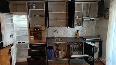 Bellissima Cucina componibile su base lineare (lunghezza M 3.40 circax2.35 di altezza) di colore Blu lucido, in ottime condizioni, completa di tutti gli elettrodomestici (frigorifero con freezer a 3 cassetti in basso, forno alto,lavastoviglie,piano cottura a gas) e comprensiva di apposito vano per lavatrice compresa (Candy da 8 kg). La cucina è già interamente smontata e pronta per il ritiro (caricamento e trasporto a cura acquirente) a Rossano Scalo.