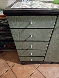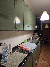 Vendesi cucina artigianale, lineare di metri 4, completa di colonna forno, elettrodomestici ariston, doppia vasca con gocciolatoio, cassetti, ante e vetrinetta, completa di vano porta lavatrice. Top nero e colore verde. Prezzo trattabile.