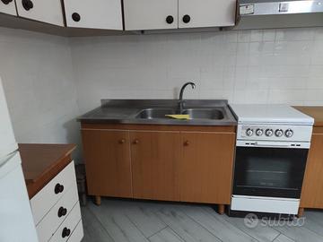 Vendo una cucina completa come da foto: cucina, mobili e pensili, tavolo e sedie. Antica m in buone condizioni.