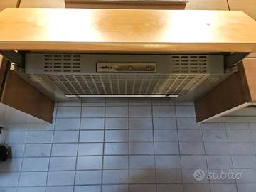 Vendo cucina L 282 cm H 246 cm, completa di elettrodomestici funzionanti hotpoint Ariston: frigo freezer, lavastoviglie, forno, piano cottura a 4 fuochi in acciaio con griglie in ghisa e coperchio in vetro, lavello vasca più sgocciolatoio in acciaio SENZA MISCELATORE. Cappello sopra pensile con faretti integrati. Ritirabile già smontata da marzo 2026. Compresa cappa Franke nuova mai montata da sostituire a quella esistente. €650