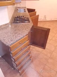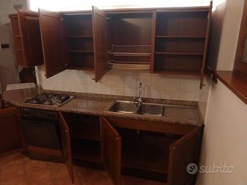 Vendo in blocco cucina completa composta da pensili a parete con sportelli battenti, pensili da pavimento con sportelli battenti, cassettiera, piano d'appoggio, piano cottura, lavello, forno elettrico ventilato, funzionante ma non in buonissimo stato.