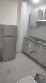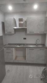 cucina completa di cm210 di larghezza con forno non ancora montato cappa aspirazione n 4 fuochi.lavello con miscelatore.frigorifero esterno incluso colore cucina cemento e top grigio scuro