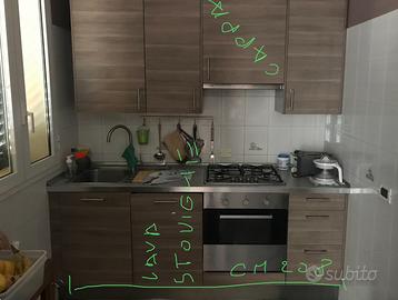 Base: lavello +sgocciolatoio,piano cottura 4 fuochi,lavastoviglie 45cmh(da sistemare), forno ventilato,cassetti.