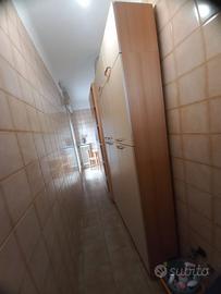 CUCINA COMPLETA DI ELETTRODOMESTICI (lavastoviglie ARISTON 6 coperti, forno elettrico, piano cottura 4 fuochi, lavandino in acciaio a due vasche ad angolo, frigorifero e congelatore Electrolux-Rex) sviluppo top 77-129 x 58 h-88, colonna frigo 60x 58 h. 242, pensili prof. 33 xc 104 h., dispensa 135x 33 h. 242.