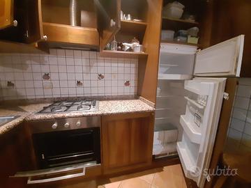 cucina in legno massello comprendente di lavello, forno, piano cottura, frigo a colonna, con congelatore. piano in pietra le misure sono nelle foto cucina posizionata ad un pian terreno, facile da trasportare e caricare