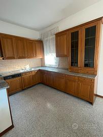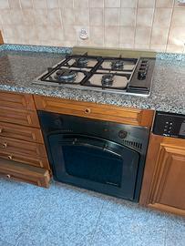 Vendo cucina in legno in condizioni perfette. Completa di top in marmo, pannello con faretti, elettrodomestici e tavolo cm 140x80 con 6 sedie.