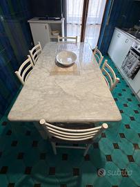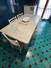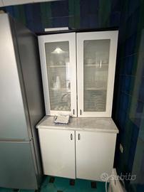 Cucina lineare bianca di circa 4metri ( senza elettrodomestici) corredata di tavolo di legno e marmo con piccola vetrina e mobile tv. Smontaggio e trasporto a carica di chi acquista