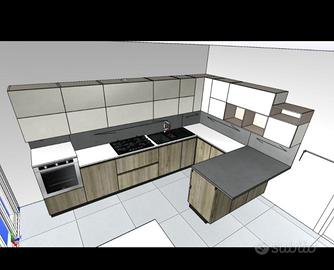 Cucina Completa Scavolini con penisola rivestita in Marmo e Gres.