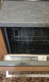 Basi con ante in ciliegio: 1 con Lavastoviglie Elettrolux, 1 con posto per lavatrice (offerta a parte), 2 sottolavello, 1 con cassetti ampi per pentole, 1 piccola con ripiani.