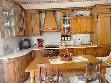 cucina in noce nazionale nuova mai usata con top in marmo rosa insieme la cucina ci sono tavolo 4 sedie e un divano in pelle bianca un po' usato ma in ottime condizioni e all interno due reti da lettini