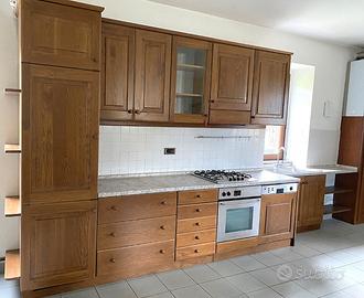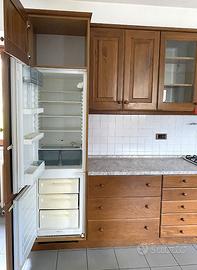 Cucina completa installata 14 anni fa, ma utilizzata raramente. Condizioni ottime, priva di graffi o segni di usura. Lavastoviglie AEG e cappa Bosch richiedono minori interventi di manutenzione; il resto (lavello, forno AEG, frigo e piano cottura Bosch) è funzionante.