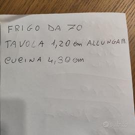 cucina completamente funzionante 5 fuochi,forno grande , top nuovo, frigo perfettamente funzionante,le misure in foto,...NON PERDITEMPO