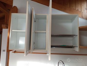 Cucina completa con forno perfettamente funzionante, buco per frigo o lavastoviglie e per quattro fuochi a gas o induzione. Misure in foto. (Il frigo non c'è più e nemmeno la piastra ad induzione)