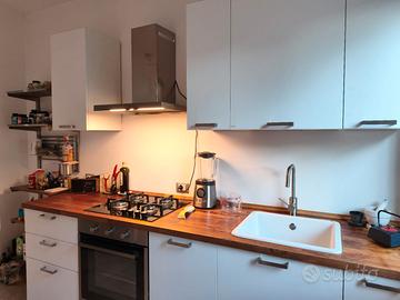 Misure: 268 x 64 cucina con bancone di legno, 60 x 25 scaffalatura metallica