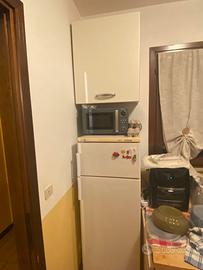 Frigorifero datato ma funzionante, c’è la predisposizione per la lavastoviglie sotto i fuochi e per il forno nella colonna.