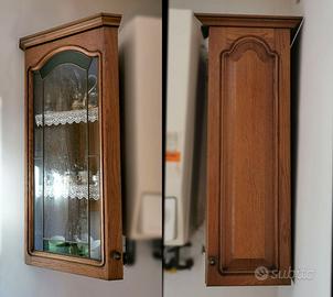 Inoltre ci sono 2 pensili come da foto, uno angolare a vetro da 30cm alto 90cm e l'altro anta 30cm sempre alto 90cm.
