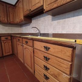Cucina in rovere massello con piano cortura e rubinetto nuovo. La cucina è del 1985. Gli elementi sono scomponibili. Prezzo trattabile dopo visione