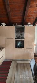 cucina ad angolo completa marchio val design, composta da colonna con lavastoviglie Siemens, due moduli da 90 cm con sopra lavello unica vasca Blanco Stewart, rubinetto franke e piano cottura 5 fuochi Franke. angolo con 4 elementi estraibili, colonna forno con forno Siemens e colonna frigo con frigo Siemens.