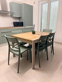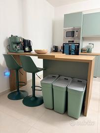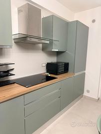 Vendo per trasferimento all’estero splendida cucina completa dal design moderno e lineare, finiture verde salvia con piano effetto legno. La cucina ha solo 6 mesi di vita, è pari al nuovo ed è ancora in garanzia. 📐 Misure principali: •Lunghezza totale cucina: circa 6 metri •Altezza: 270 cm •Profondità basi: 60 cm •Penisola: circa 120 x 55 cm + modulo 80 x 40 cm Composizione completa di: •Colonna frigo •Colonna forno + microonde •Mobile laterale contenitivo •Basi e pensili con ampio piano di lavoro La vendita comprende inoltre: •Elettrodomestici inclusi •Penisola funzionale •2 sgabelli coordinati •Tavolo allungabile •Sedie coordinate •Lampadario moderno di design Vendita esclusivamente in blocco (non separatamente).