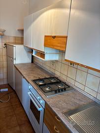 Cucina in legno anni ‘90 con piano cottura a gas e forno elettrico sostituiti di recente. Smontaggio e ritiro a carico del compratore