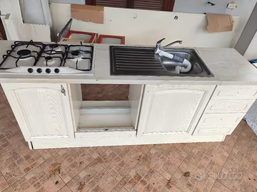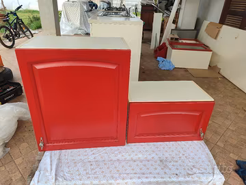 Vendo cucina componibile marca Colombini, sportelli in legno massello, struttura e piano in mdf, piano cottura 4 fuochi Franke. Lunghezza 2.10 MT in più è presente un prolungamento del piano per inserire un'eventuale lavastoviglie con quello diventerebbe 2, 70 MT . la cucina è composta nel piano inferiore avorio 1 . n °1 cassettiera con n 4 cassetti 2 . n° 1 mobile grande sotto lavandino 3 . n° 1 mobile per forno 4 . n° 1 mobile con n °1 ripiano 5 . piano composto da un lavandino con vasca , e alloggiamento per gas. 6 . n° 1 piano cottura 4 fuochi franke completo piano superiore sportelli rosso rubino 1. n° 1 pensile vetrina 2. n ° 1 pensile a vista con ripiano e decorazione piccola staccionata per tenere libri , oggetti, ecc 3. n° 1 pensile scola piatti con ripiano superiore 4 n° 1 cappa sotto pensile con sportello rosso (mai usata) praticamente nuova Vi posso assicurare che è veramente funzionale e tenuta molto bene , considerando che la maggior parte dei mobili sotto lavello sono distrutti questo è immacolato. L' unica pecca che trovate è la mancanza dei pomelli in basso , è completa di battiscopa , imballato pezzo per pezzo e pallettizzata per trasporto più agevole. Per informazioni potete contattarmi.