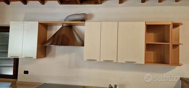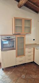 Cucina moderna e funzionale, composta da basi, pensili e colonna: ha una ventina di anni ma tenuta sempre molto bene. Struttura solida, materiale impiallacciato color wengè bianco gessato opaco , piano di lavoro in fragranite quarzo e vetro color crema.