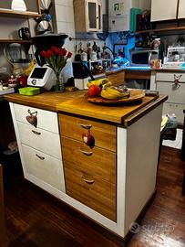 • Isola mobile/cassettiera in legno dotata di comode ruote (ottima come piano di lavoro aggiuntivo).