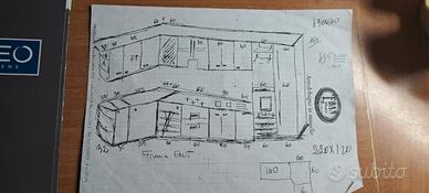 Causa sostituzione con cucina nuova, vendo cucina componibile angolare usata , con sviluppo totale metri 5,40, attualmente montata con il primo lato frontale m 3,75 il secondo lato metri m 1,66.