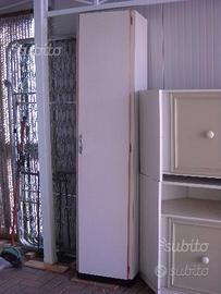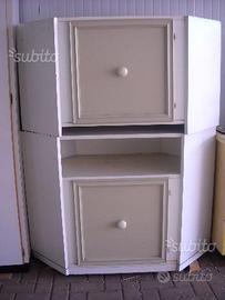Vendesi come da foto bella e conservata cucina vintage completa, anni '60, costruita interamente a mano da nota ditta dell'Eporediese. Color avorio con piano di lavoro rosso. Vari pensili con ante, di cui uno scolapiatti. Completano la cucina la colonna quadrata "porta scope" e i 2 mobili esagonali.