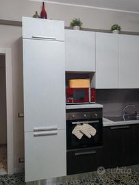 Cucina componibile Aran, attimo stato compresa di elettrodomestici; frigo, forno lavastoviglie, piano cottura. Colore bianco cemento e marrone.
