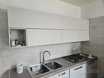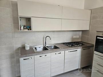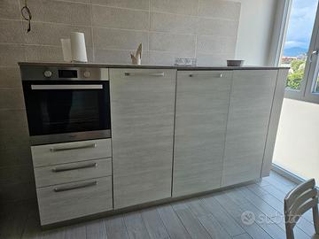 vendo causa cambio abitazione, cucina componibile ARREDO 3, anno 2020, completa di elettrodomestici, frigorifero, forno, lavastoviglie, kappa, forno a gas, lavello, tutti perfettamente funzionanti, usata pochissimo, senza segni di usura, adatta per casa al mare o casa studenti, mobile più alto lungo 255 cm, mobile con lavello e fornelli lungo 245 cm, trasporto a carico dell'acquirente.