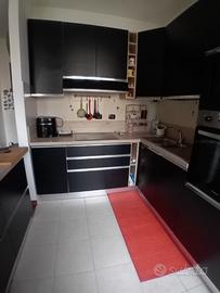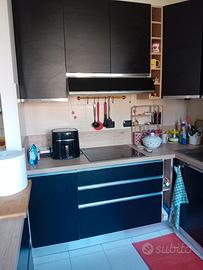 cucina componibile completa di elettrodomestici.Frigo grande Indesit + piano ad induzione+microonde+forno il tutto Candy e penisola.La cucina ha 2 anni.Smontaggio e trasporto carico acquirente.Colonna frigo +forno 135 .Molti ripiani in cui mettere la roba