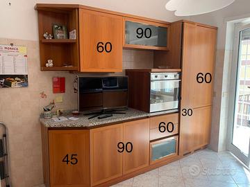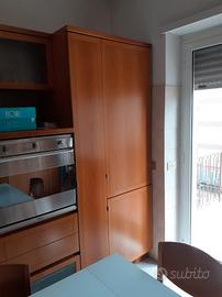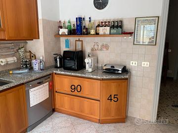 Cucina componibile completa, piani in marmo con il lavello sottotop, elettrodomestici funzionanti piano cottura 5 fuochi, forno ventilato, frigo e congelatore , colonna dispensa con cestelli, ante e cassettoni, in buone condizioni